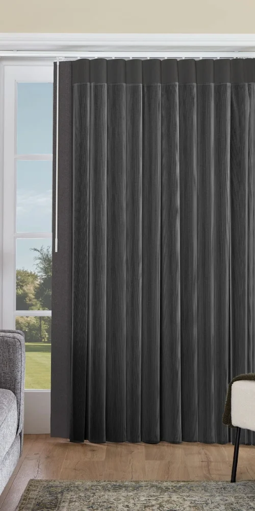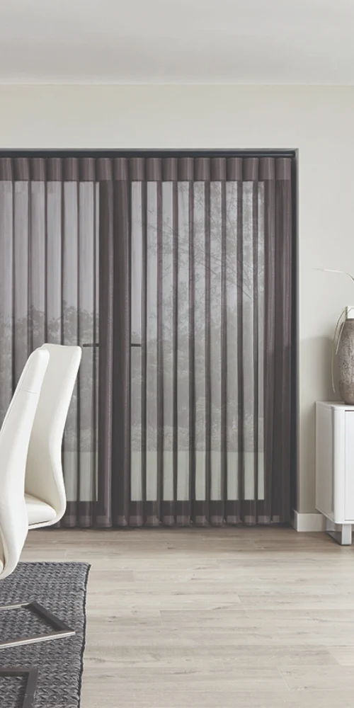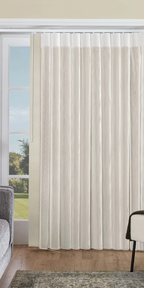 Allusion Curtains feature two layers: a sheer fabric for light and a thicker fabric for privacy. You can walk through them, slide them gently aside, and even rotate the vanes to shift the light in your room.