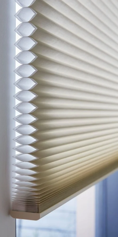 Cellular shades fix this with hidden air pockets that act like thermal insulation. When fully down, they make a better wall against the window, helping warmth stay inside. It’s a simple idea with a big effect on your monthly power bill.
