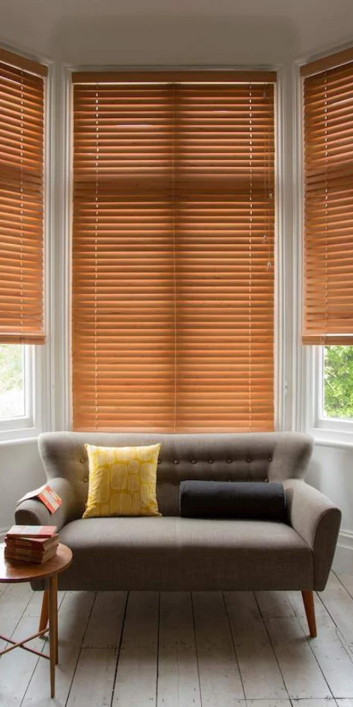 Wood blinds have a wide horizontal slat which is tilted to allow just the correct amount of light in. They diffuse the sunshine all day long and never leave the room bright but uncruelly. They close at night and allow you all the privacy and a safe sense of security.